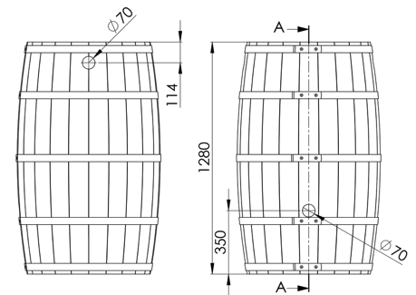 W standardzie beczka wyposażona jest w mosiężny zawór czerpalny 3/4' oraz niezwykle solidny również mosiężny przepust umożliwiający niezwykle prosty montaż i demontaż zaworu czerpalnego.